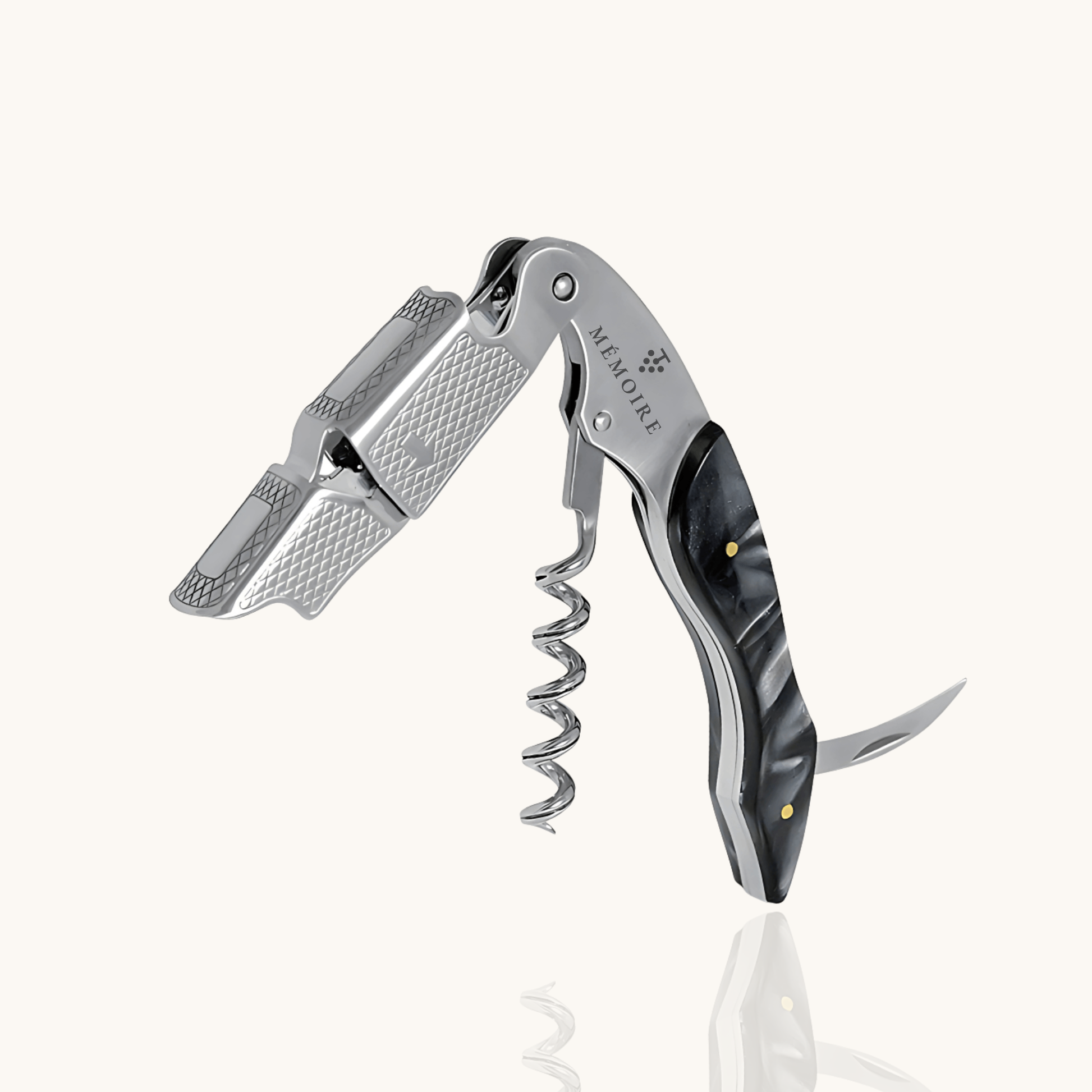 The Elite opener uses both a spiral and two thin pins. This keeps the cork stable, even in older or difficult-to-open bottles. The movement is controlled and effortless—ideal for those who value precision.